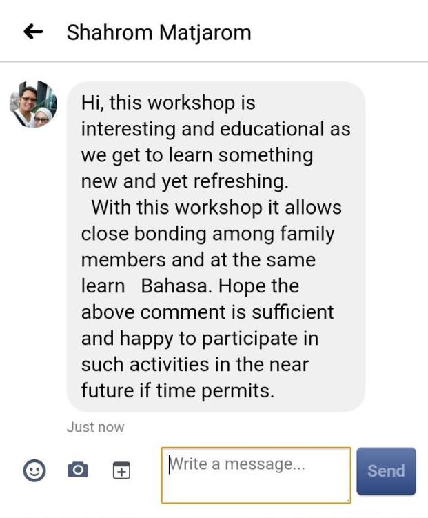 This programme can be conducted in both English and / or Malay and it is usually done in less than 4 sessions of 1 hour per session.